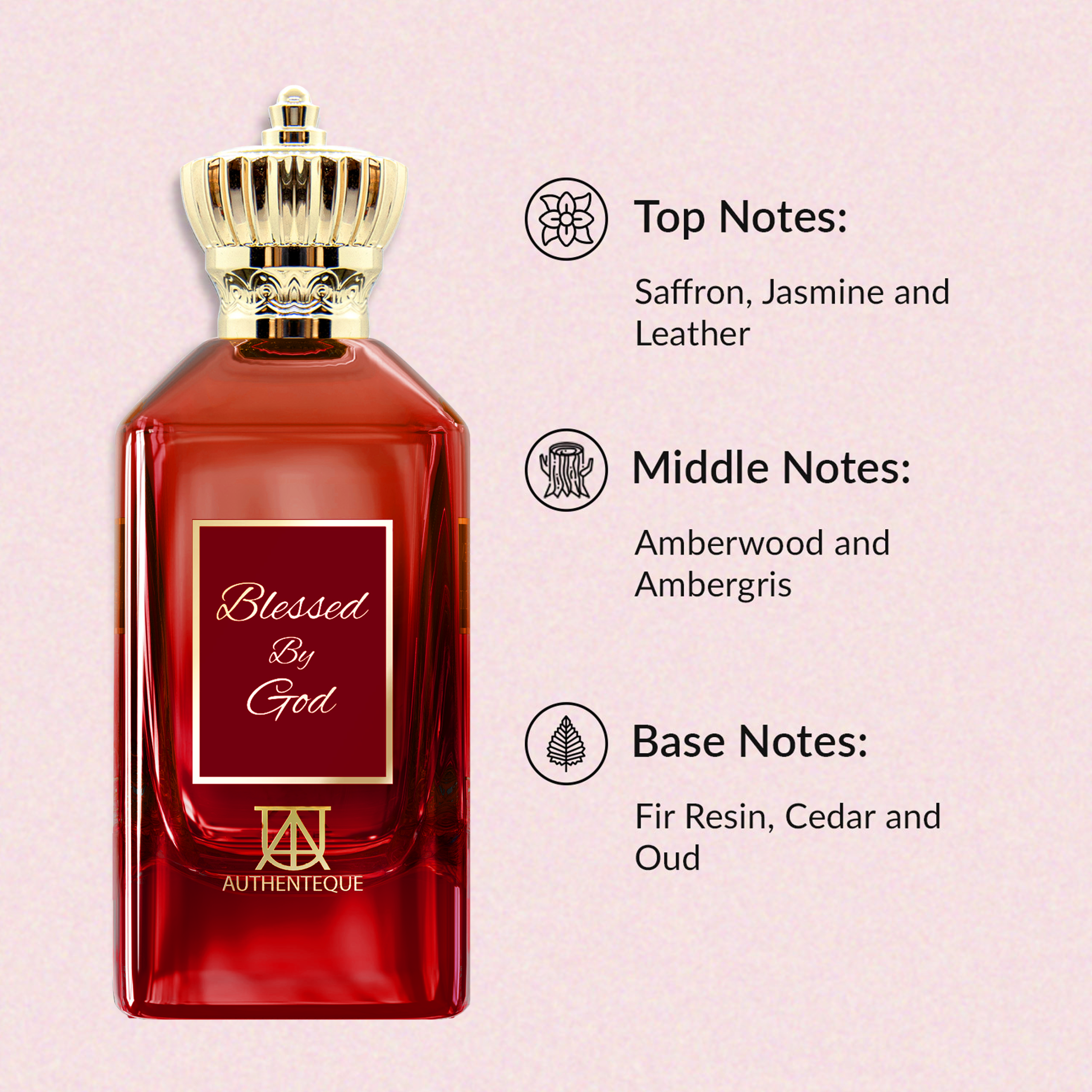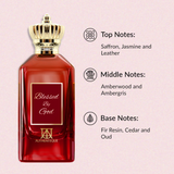In the heart of an ancient, sacred forest, there existed a mystical clearing known only to those who sought divine inspiration. This enchanted place was believed to be blessed by God, and it was here that a unique fragrance, aptly named "Blessed by God," was born. As dawn broke over the clearing, the air filled with the opulent top notes of saffron, jasmine, and leather. These luxurious scents intertwined, creating a rich and captivating aroma that spoke of both earthly opulence and heavenly grace, awakening the soul to the mysteries of the divine.
